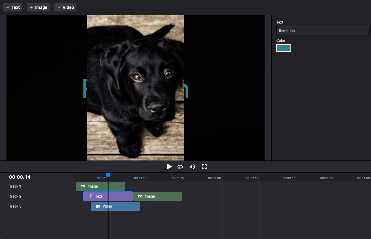 remotion/Timeline.tsxconstEditor :React .FC = () => { const [tracks ,setTracks ] =useState <Track []>([ {name : 'Track 1',items : []}, {name : 'Track 2',items : []}, ]); constinputProps =useMemo (() => { return {tracks , }; }, [tracks ]); return ( <> <Player component ={Main }fps ={30}inputProps ={inputProps }durationInFrames ={600}compositionWidth ={1280}compositionHeight ={720} /> <Timeline tracks ={tracks }setTracks ={setTracks } /> </> ); };